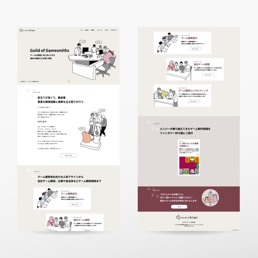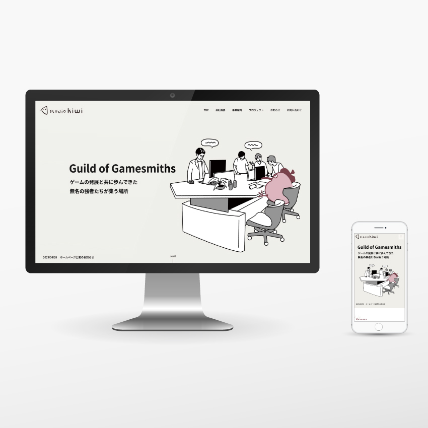 何かのジャンルに秀でた能力があり独立した人が、フリーランスなのか法人化するかは別として、Webサイトもロゴもないような状態でずっと生きているというケースは意外と少なくありません。その人が自分という商品を使って仕事を取ってこれるのでそれでも成り立ってしまうわけですね。それが従業員を雇うだとか、仕事のステージが上がったなどの理由ができて初めてWebサイトを作りたいと思う。今回はそうしたゲーム業界で働く会社の実例です。